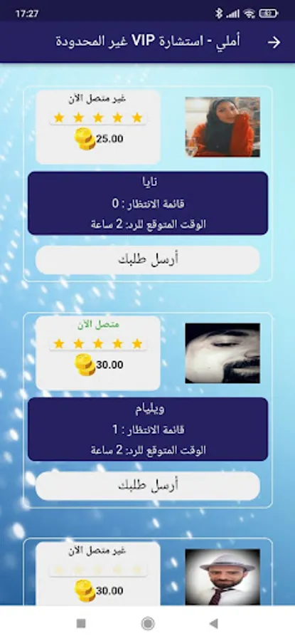 Send the question in writing or via a voice message and choose the consultant that you would like to answer your inquiries.