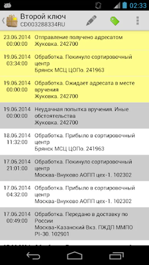 This application designed for tracking parcels that was send (in or out the country) via Russian state postal company "Russian Post" (www.russianpost.ru/) Application also include widget for tracking parcels.