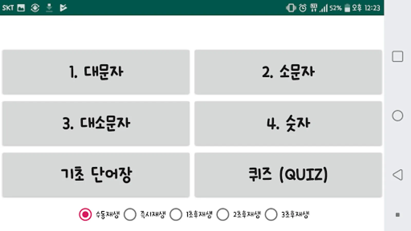 We have created an English study app using the basic menu of our Korean Hangul study (large screen) app.