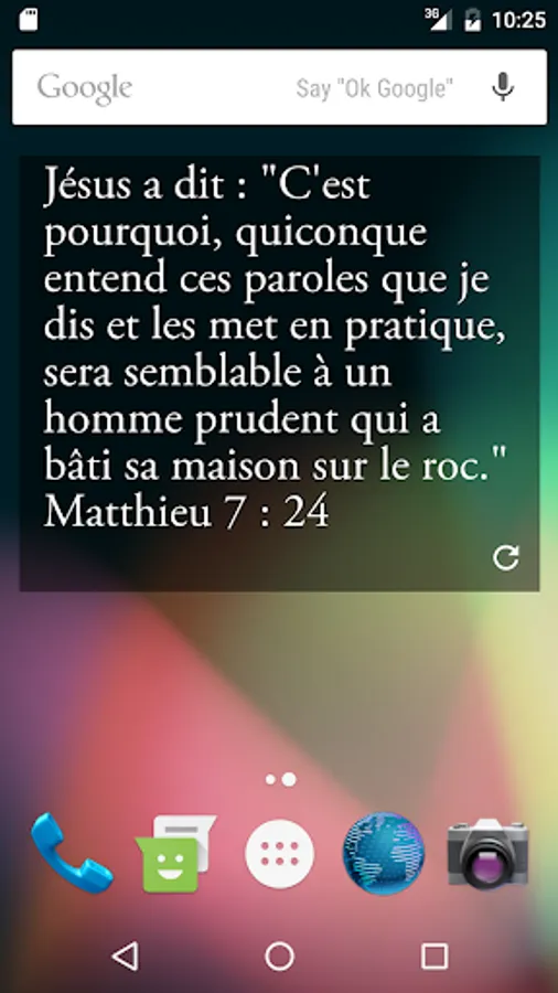OPERATION: Once the application is launched, you must add the widget / gadget on the screen of your device in the same way as all other widgets. This is only a WIDGET / GADGET and the application only serves to configure it. The verse appears in the widget and not the application.