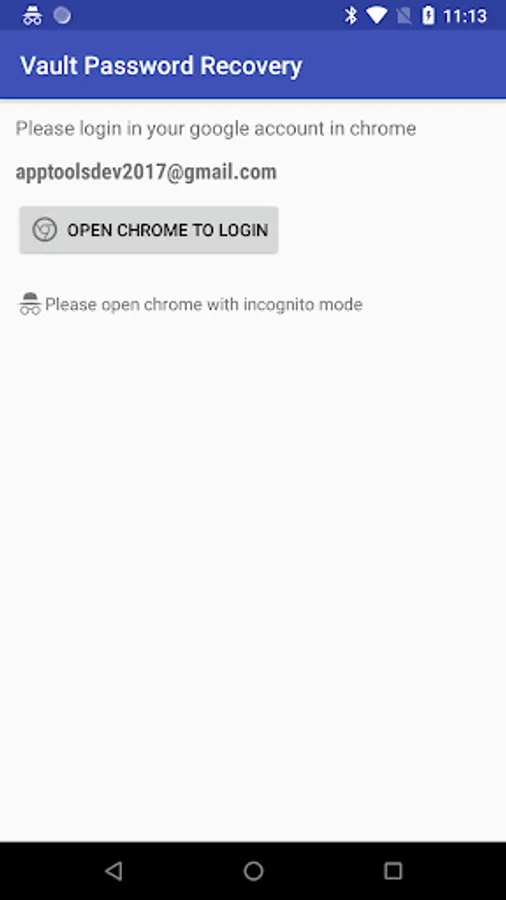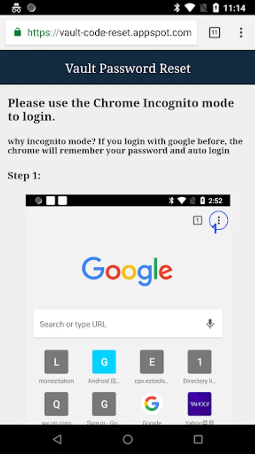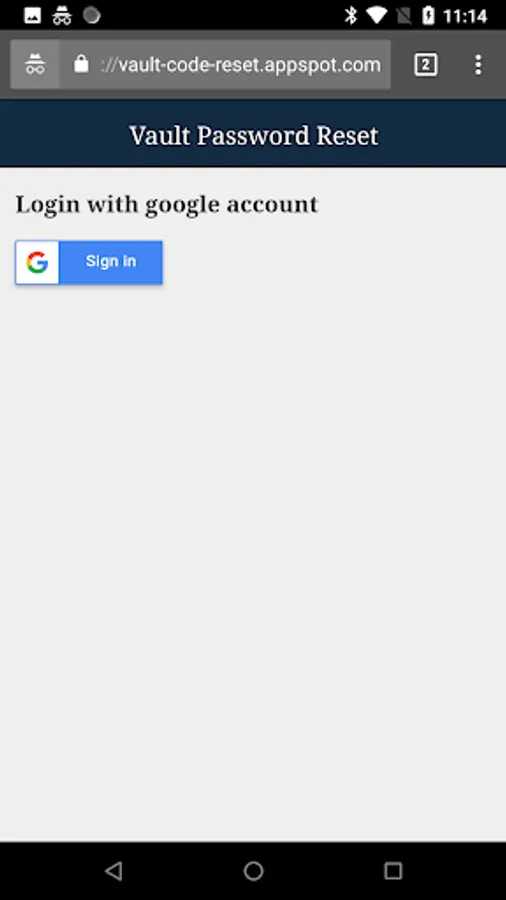 3. Enter url https://vault-code-reset.appspot.com/ and login with the same google account on your android phone.