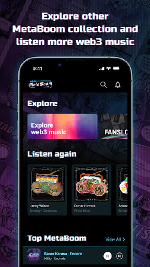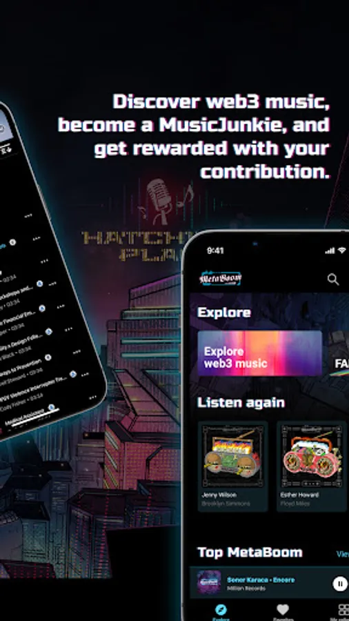 MetaBoom is your personal DJ booth, reimagined for the web3 world. It allows MetaDJs (MetaBoom holders) to curate music NFT playlists and MusicJunkies (you!) to listen and share the music.