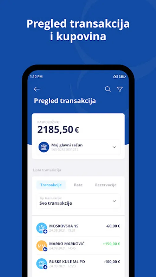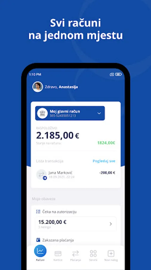 • Svi računi na jednom mjestu: transakcioni, devizni, štedni i kreditni