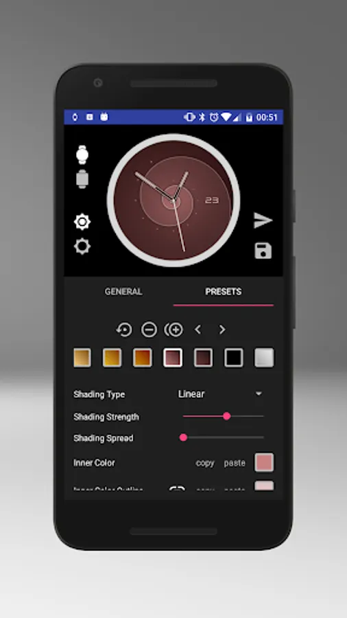 Watchface inspired by the sheer beauty of a nautilus shell. Browse through multiple presets to find the one that matches your style best or create your own! Every visual element is customizable - fine tune colors and shading as desired.