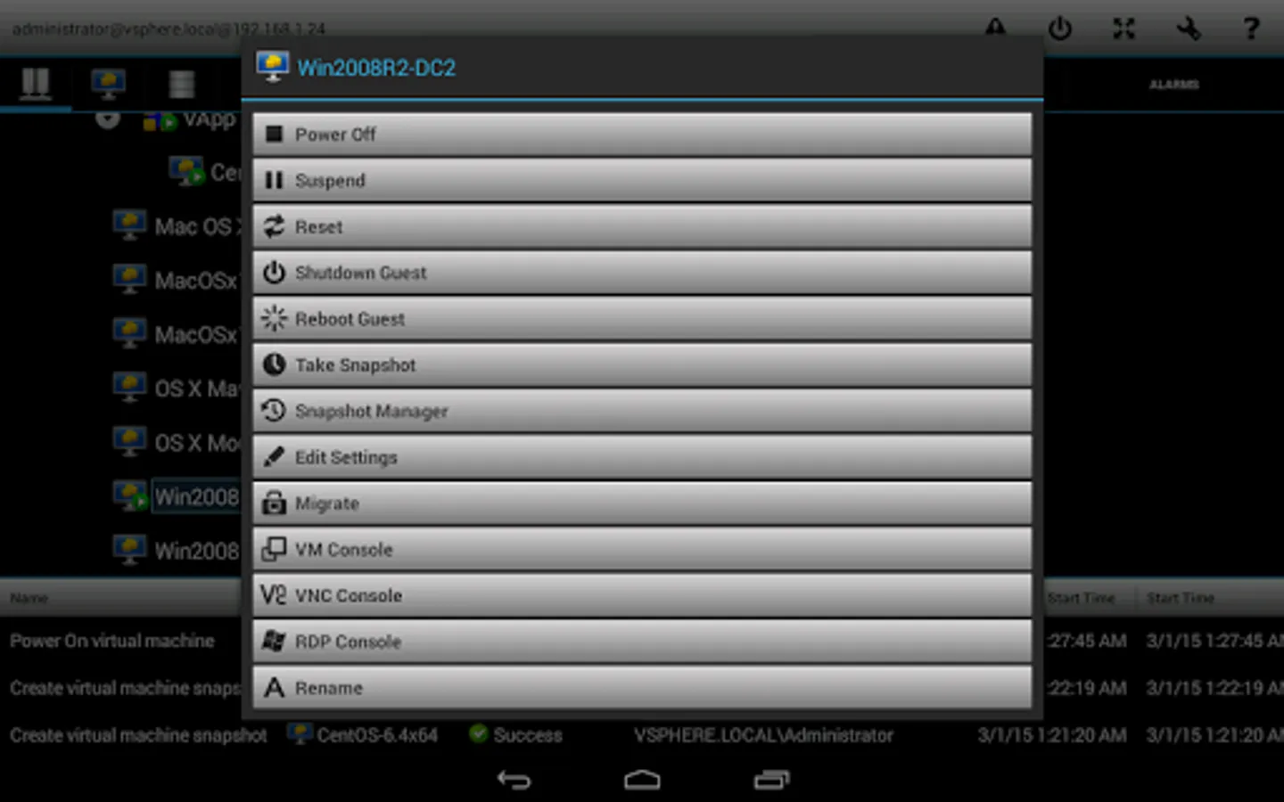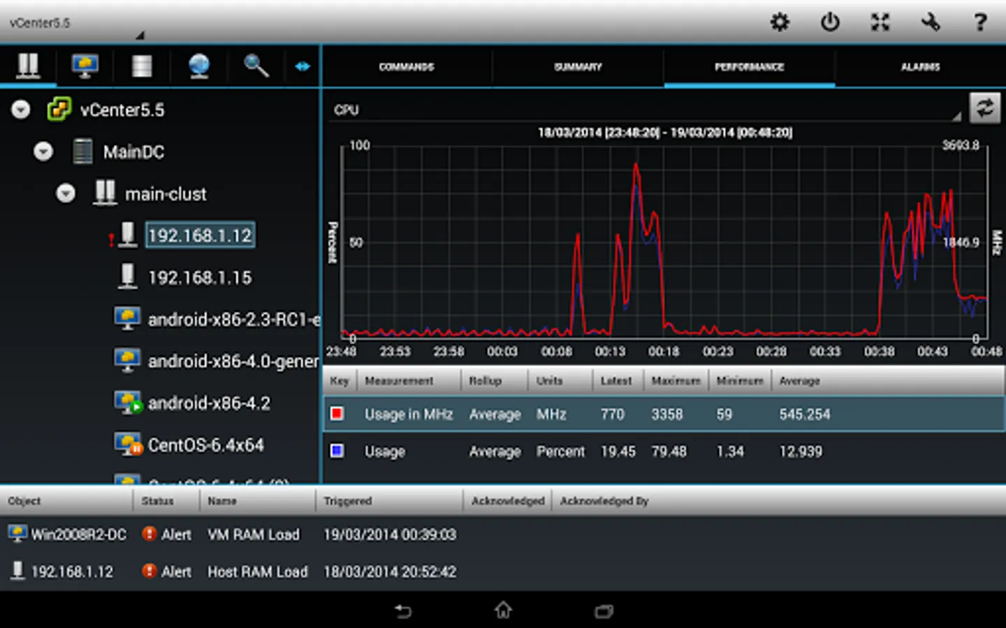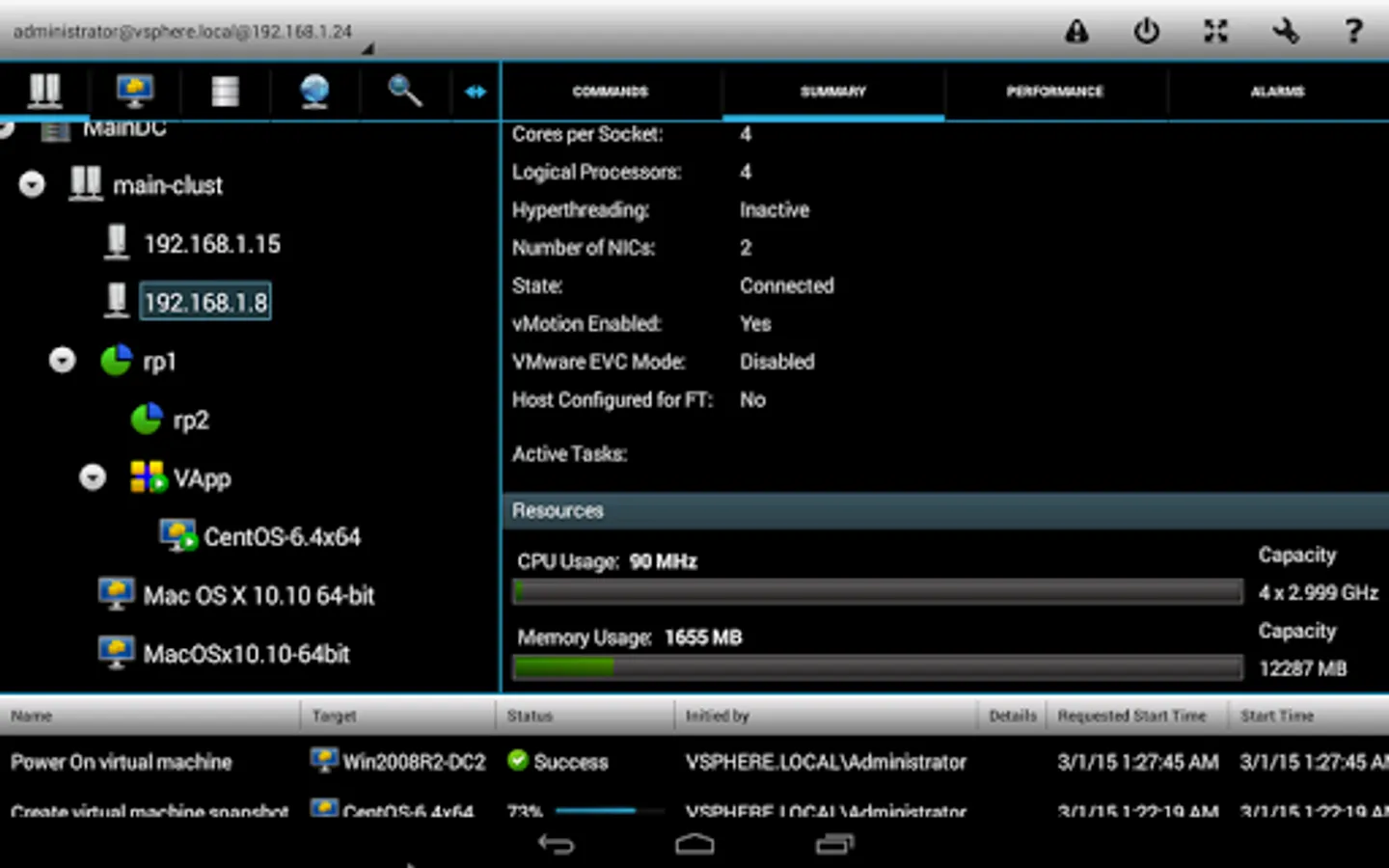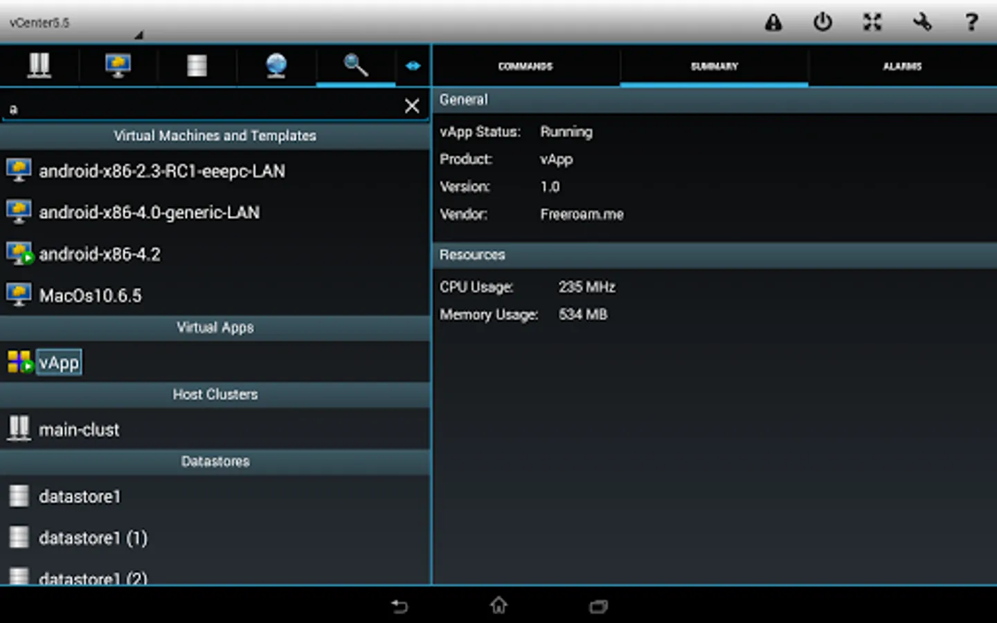 vmwPAD is the client application designed for the remote monitoring and management of VMware vSphere® infrastructure from Android devices.