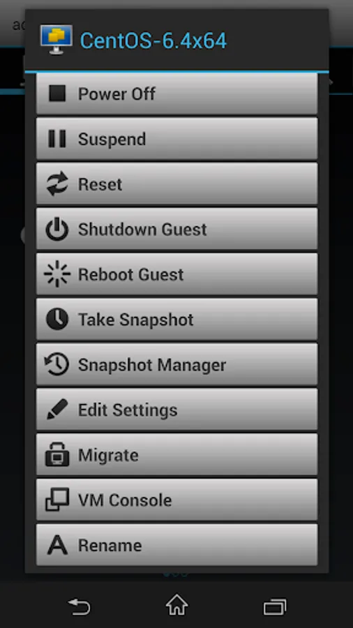 - All of the basic management operations for VMs, hosts, vApps etc. supported.