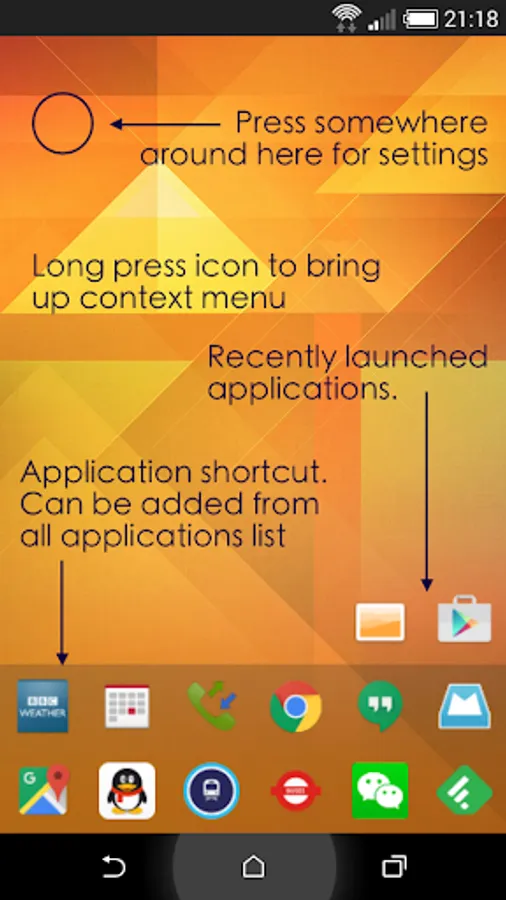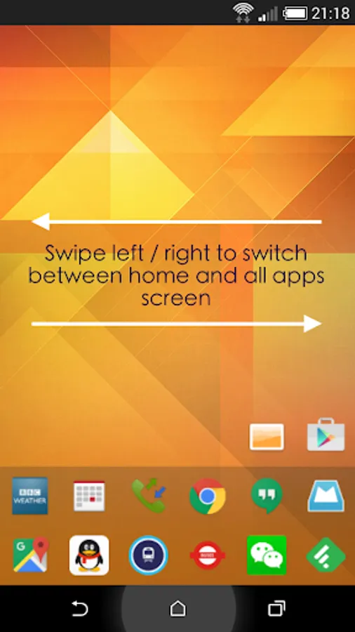* No fancy UI. Simply swipe left / right to navigate between the home screen and all application list. If you like to decorate you home screen with a lot of fancy things then this is not the right launcher.