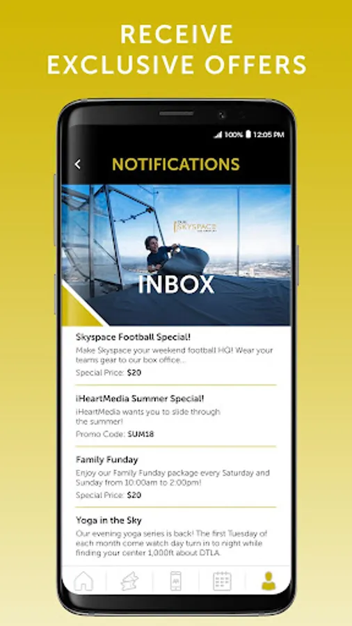 Get to Skyspace faster and skip the line. Purchase tickets through the mobile app. Plus, receive exclusive offers available only to app users.