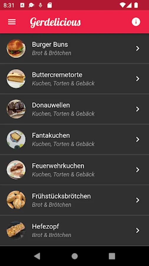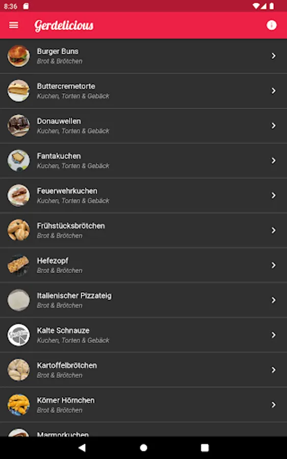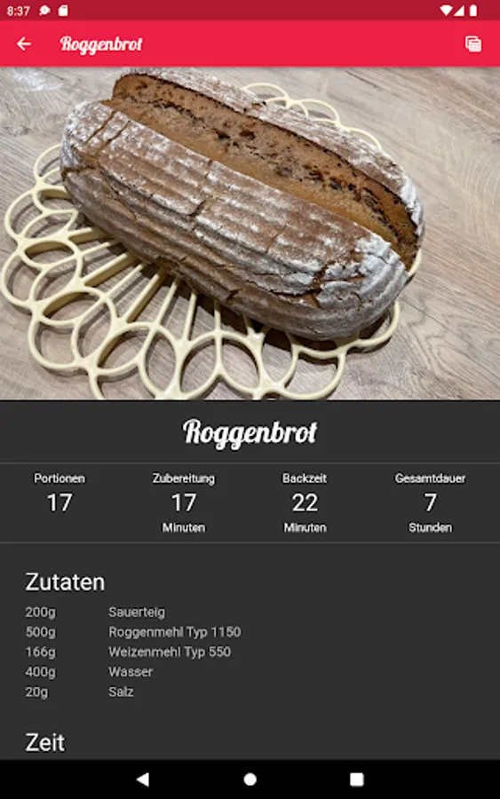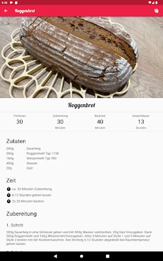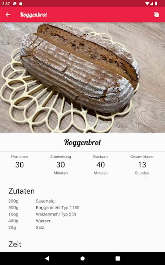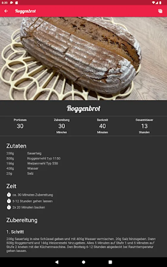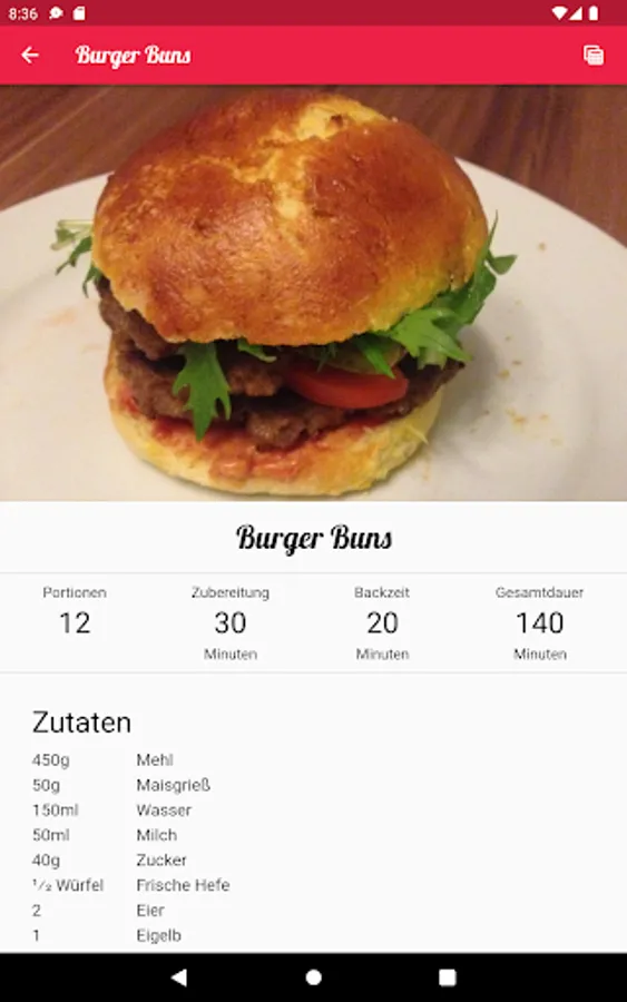 This app contains some recipes with ingredients, step-by-step instructions and allows you to share the recipes.