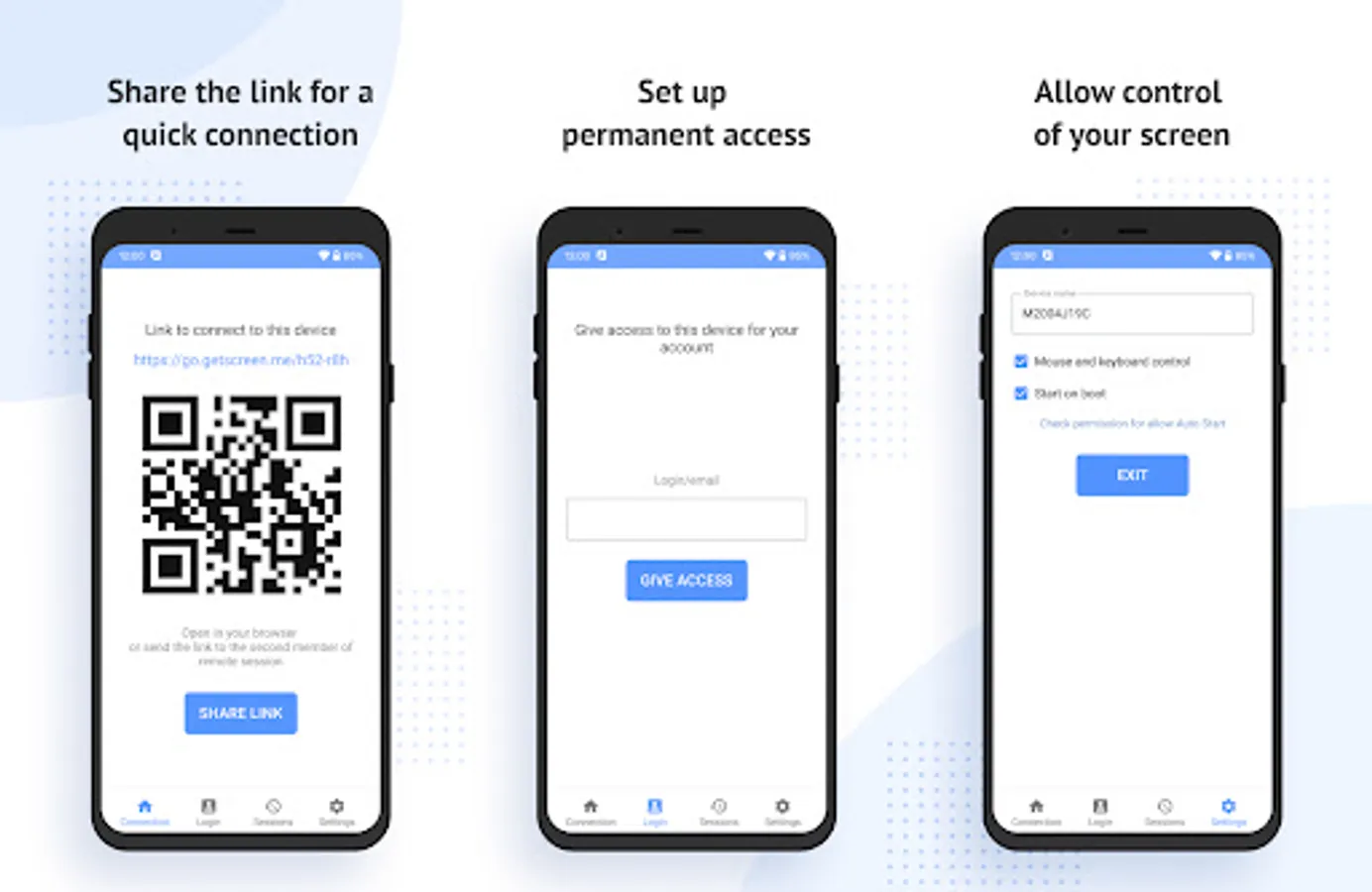 *This application also using Accessibility service support (through Getscreen.me Accessibility service) for handle pointer and gestures on your device.
