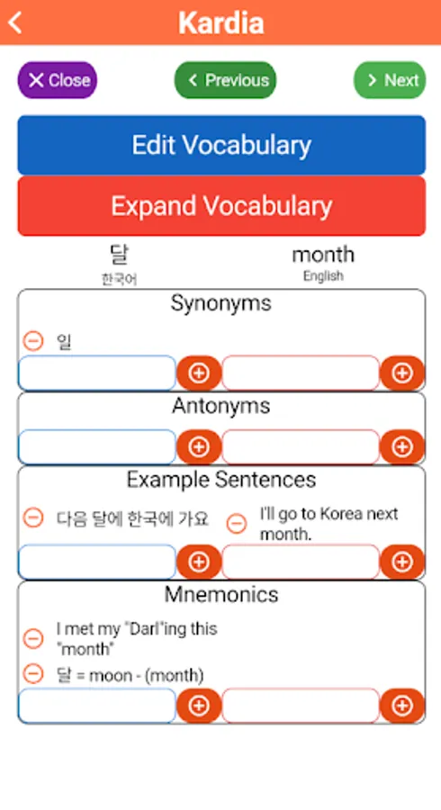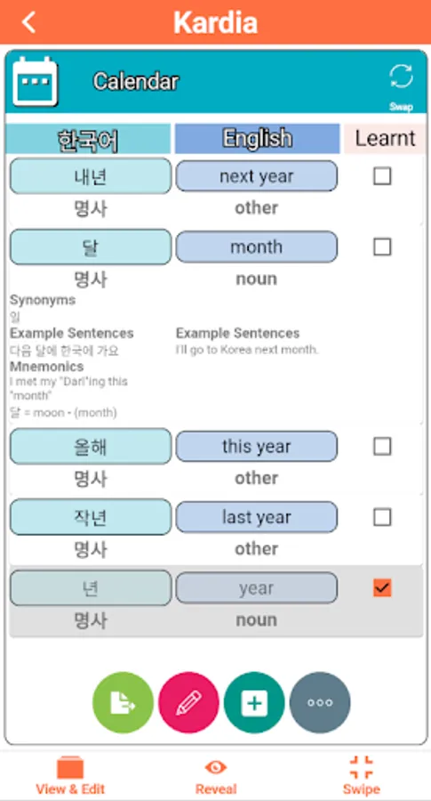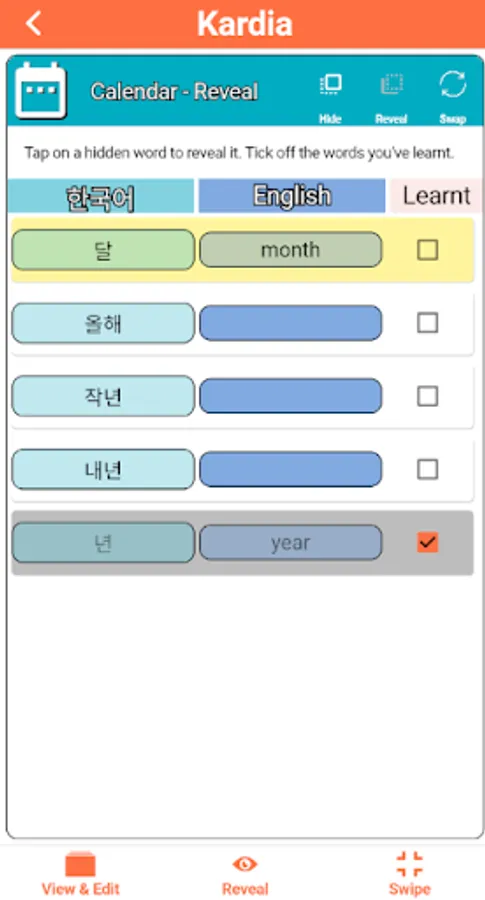 Kardia is an app to help you revise and memorize foreign language vocabulary.