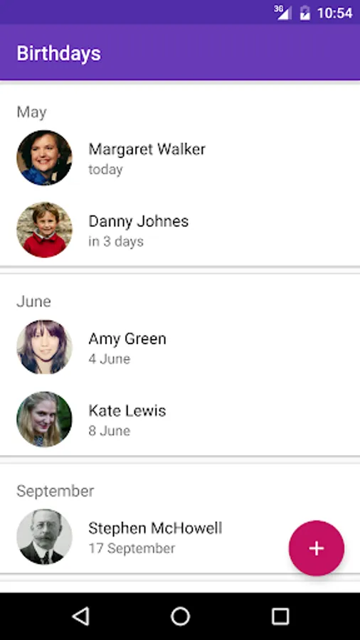 The app contains no ads and it is completely free. It is easy to use, unlike bulky calendars and organizers. You will be able to find desired date quickly within the app, without annoying ads and unnecessary complications. Yes, social networks can remind you some birthdays. But do your friends always fill in the birth date field? Does your granny have an account in social network? Simply store all the information in one place. Also you can always attach a photo to person and write down ideas for future presents.