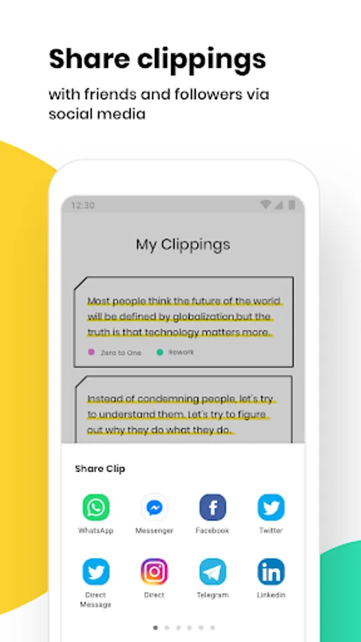 Read great books, save quotes you love, share clippings with your friends or revisit them whenever you need to. Clippit makes it easier to save and organize quotes in one convenient place!