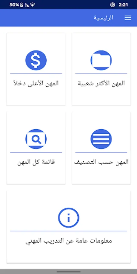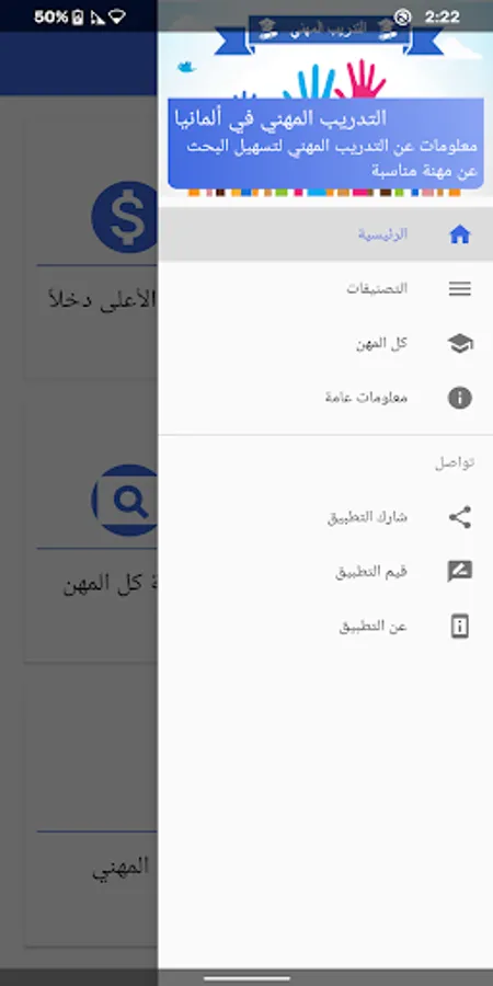 The application is connected to the online database so the list of professions and all information contained in this application will be updated continuously without having to load the application again or update it.