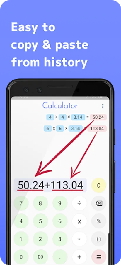 CnP Calculator is allow you to copy from history very easily.