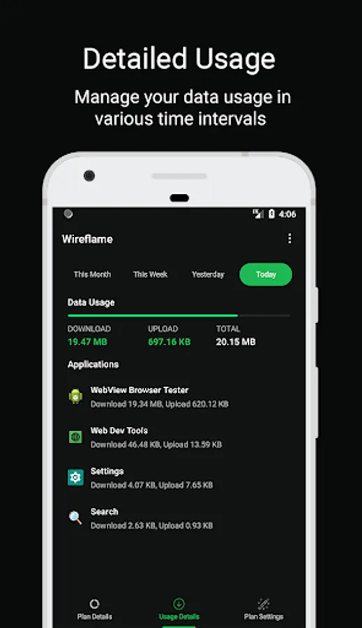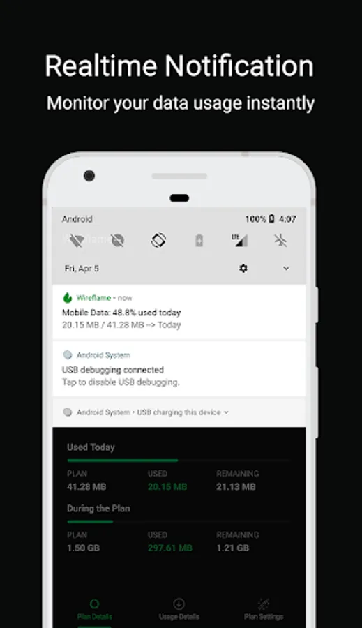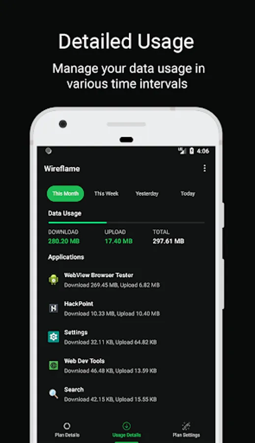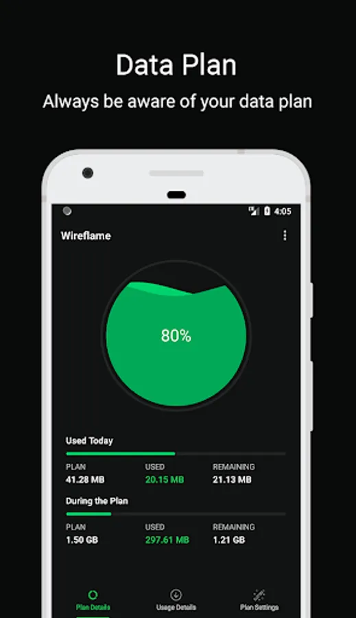 Wireflame is a smart app to monitor and take control of your mobile data usage per application. You can instantly see what apps are slowing your phone’s internet connection or wasting your mobile data. Additionally, you can set your mobile data plan and check daily.