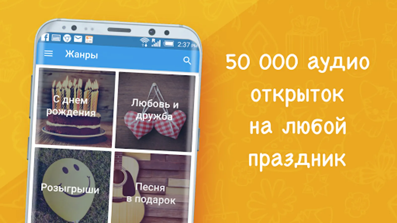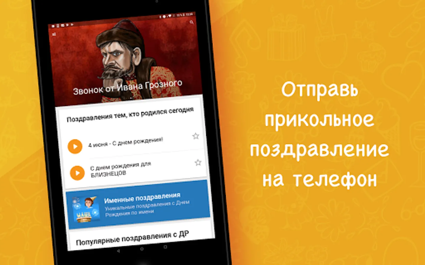 Musical cards and wishes for every day. Unforgettable congratulations on your wedding day and anniversary. Wishes of good morning and good night on the phone. Funny voice greetings for the most popular holidays celebrated in Russia and the CIS.