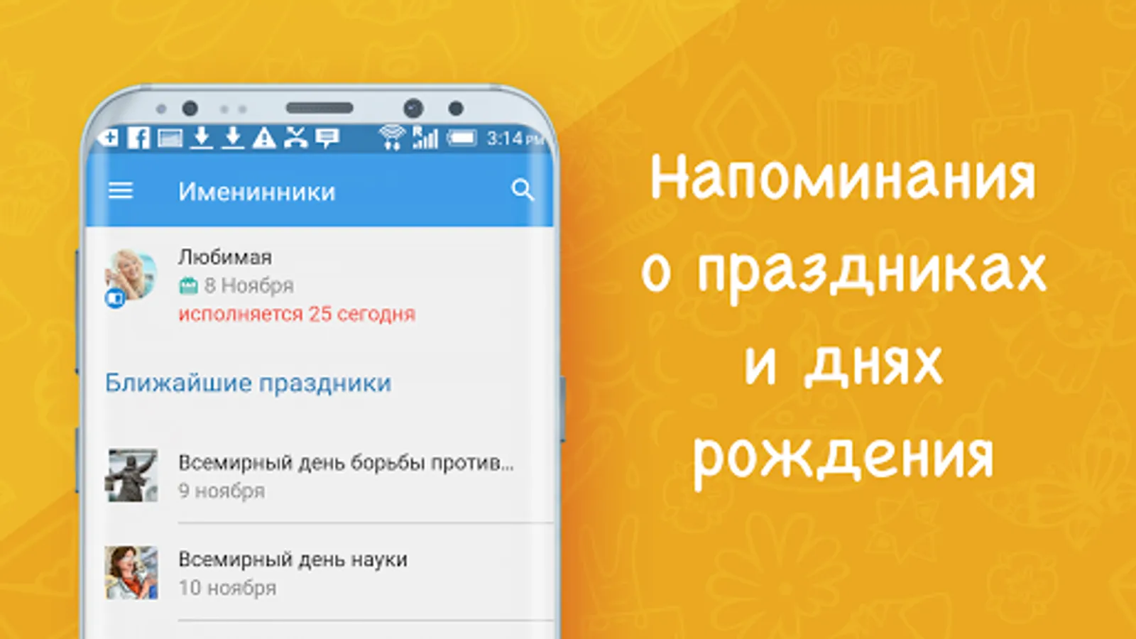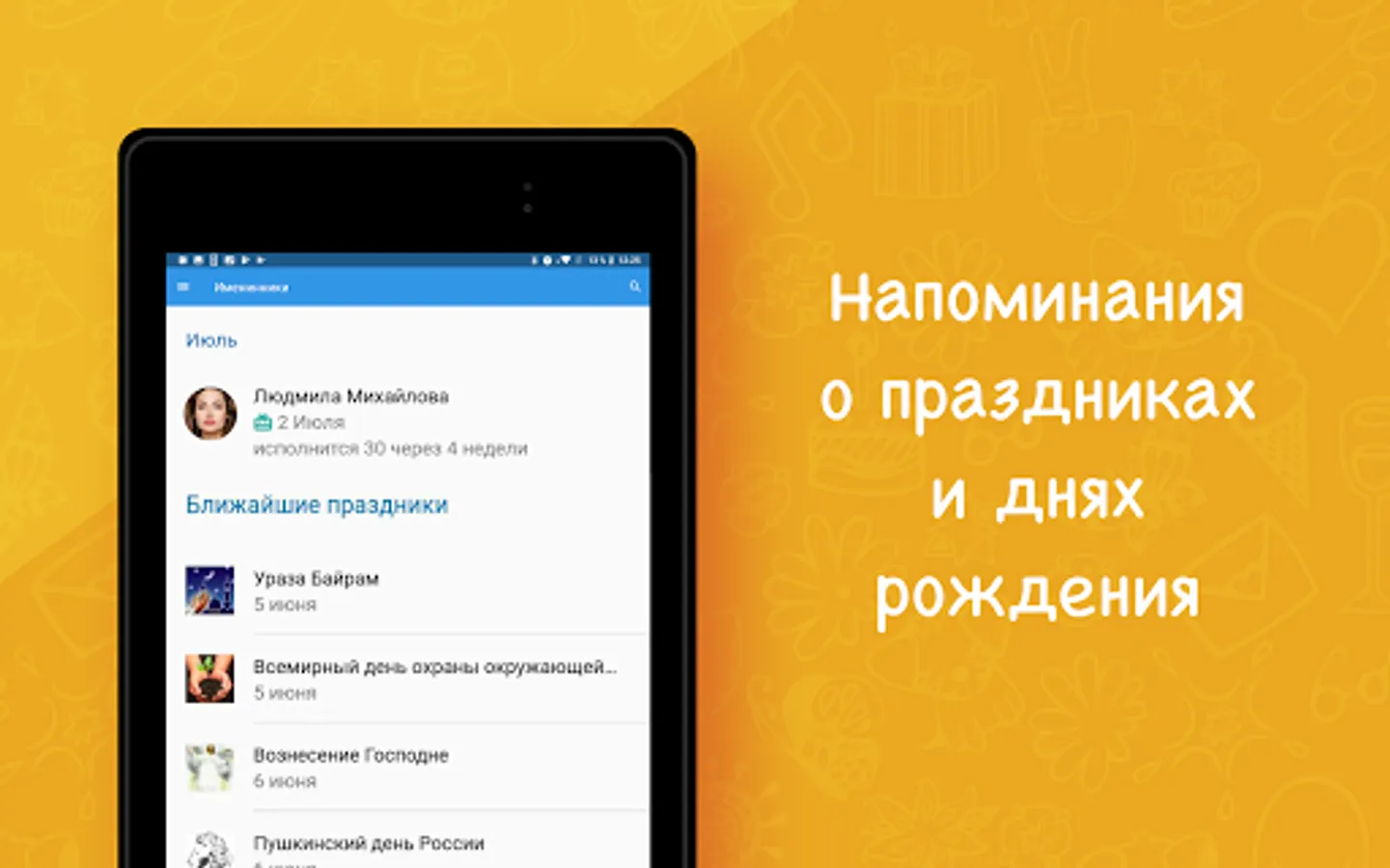 Just add contacts from your address book, VKontakte or Odnoklassniki and get convenient notifications.