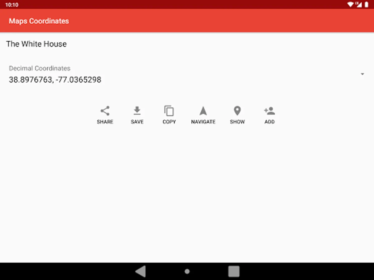 All you have to do is launch the official Google Maps™ app, go to the desired location, click "Share" and select "Get Coordinates"!