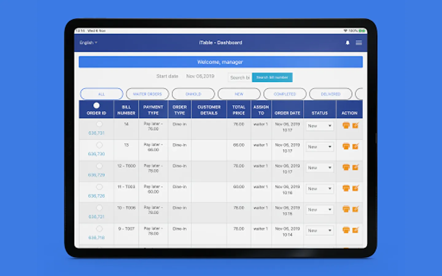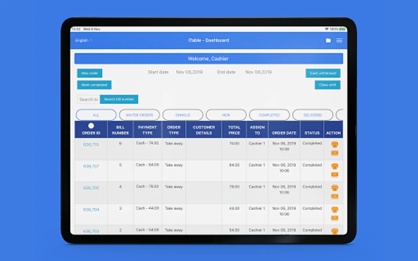 You can control your restaurant, take the order cashier, kitchen chef, waiter and manager also take a reservation and control it