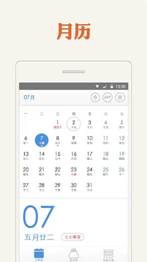 Speed experience, to quickly view the Gregorian calendar, the lunar calendar, almanac, festivals, auspicious days, statutory holidays, is the fastest calendar
