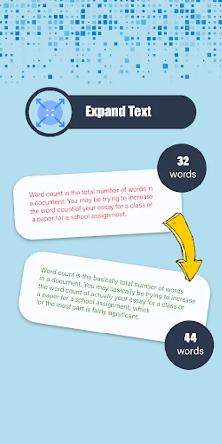 - Expand text: You can increase the text's length in one click and without changing the meaning.