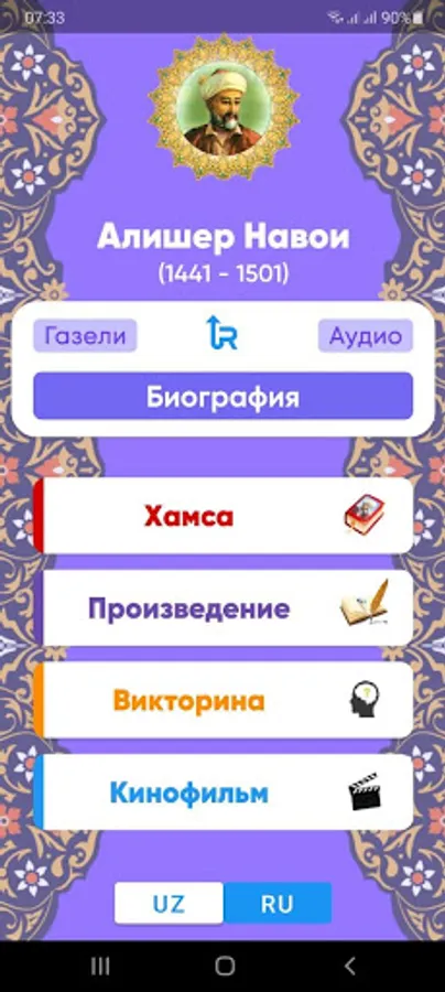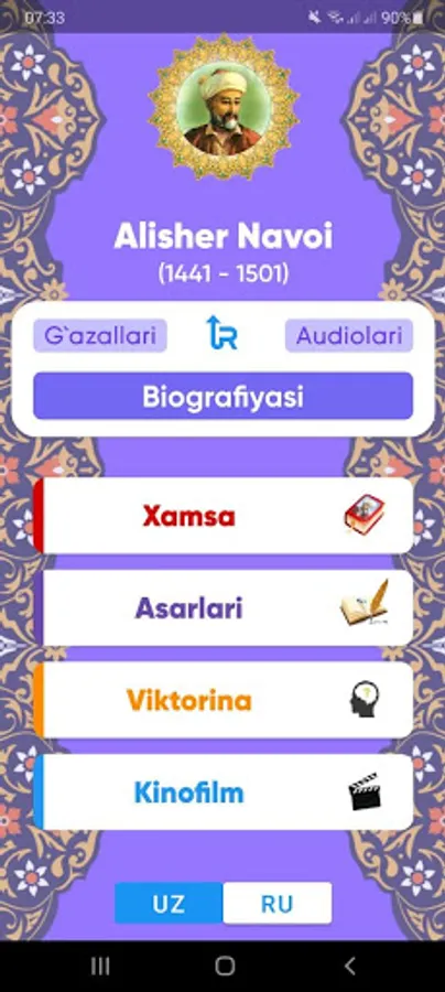 Siz ushbu mobil ilovada Alisher Navoiyning: