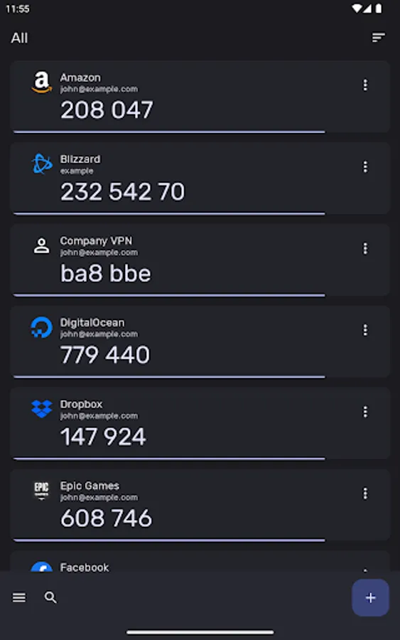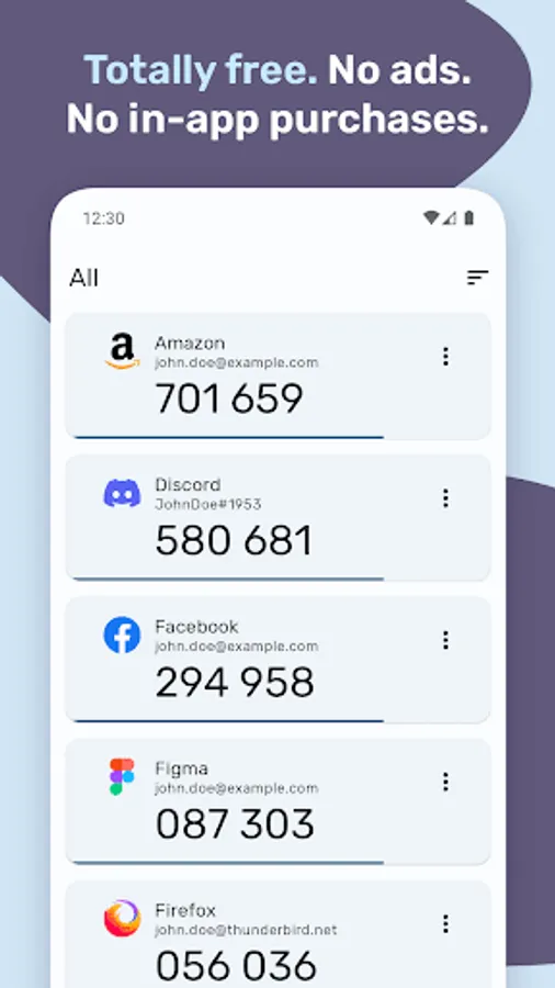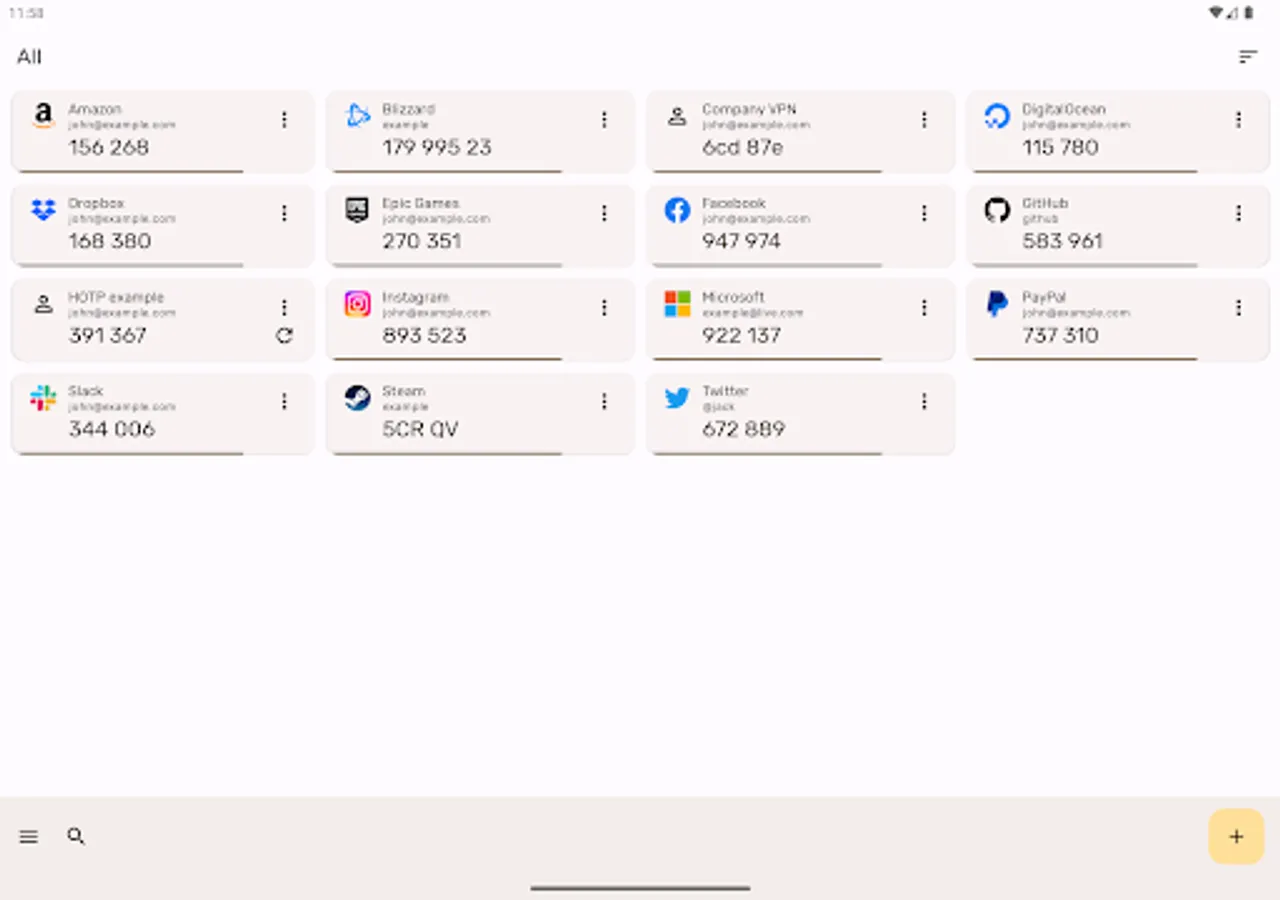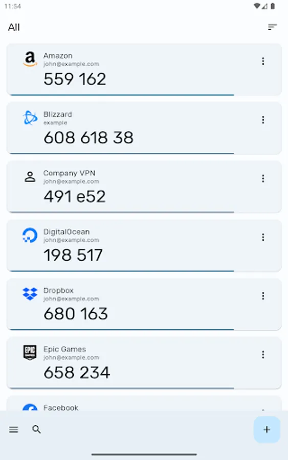 Find your authenticators easily with recognisable brand logos and icons next to each code.