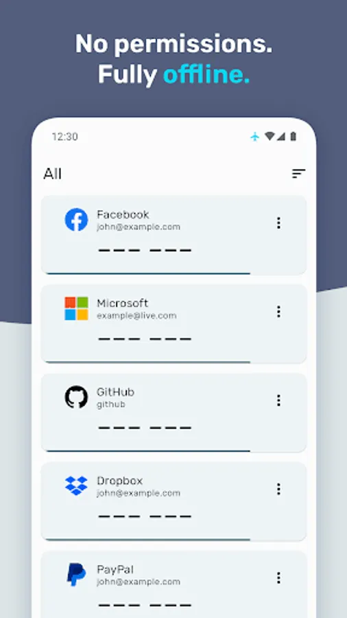 Authenticator Pro only requires a single permission and does not require Internet access to function.