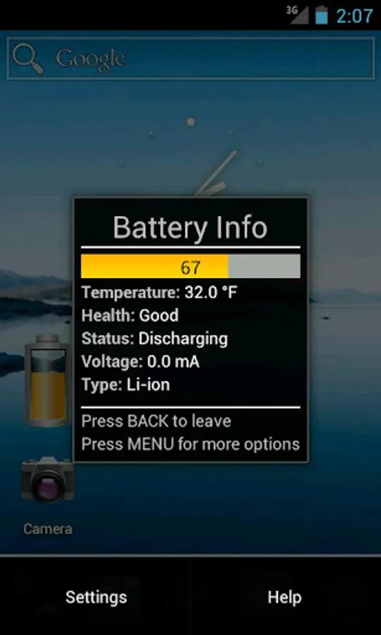 * Shows you your battery level at a glance, as well as detailed information, just by clicking on the battery.