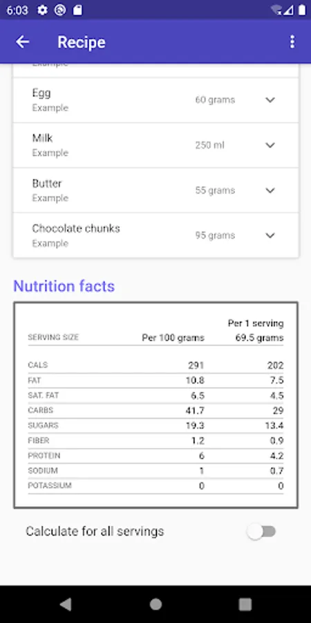 Foodsum is a little helper in calculating nutrition facts for homemade recipes.