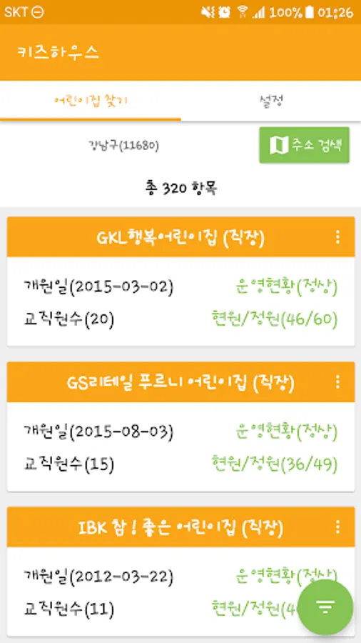 전체 어린이 집의 리스트가 나타납니다.