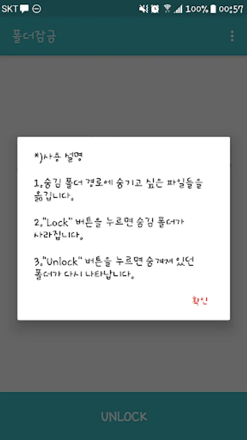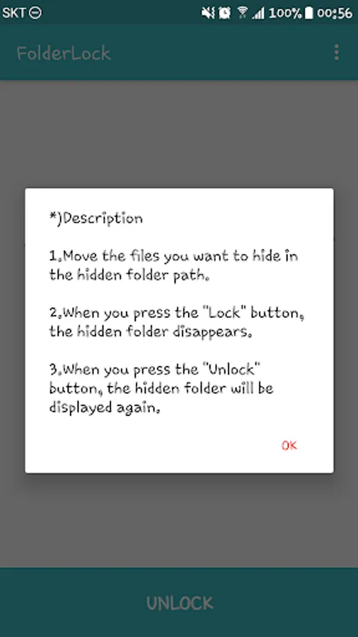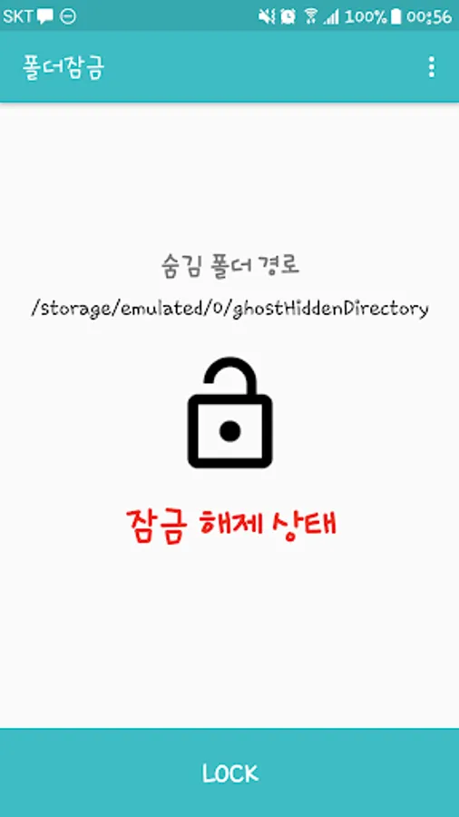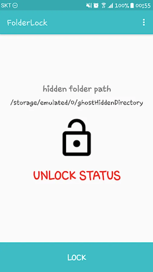 The process is simple. Run the app and folder lock, lock folder, just press the button.