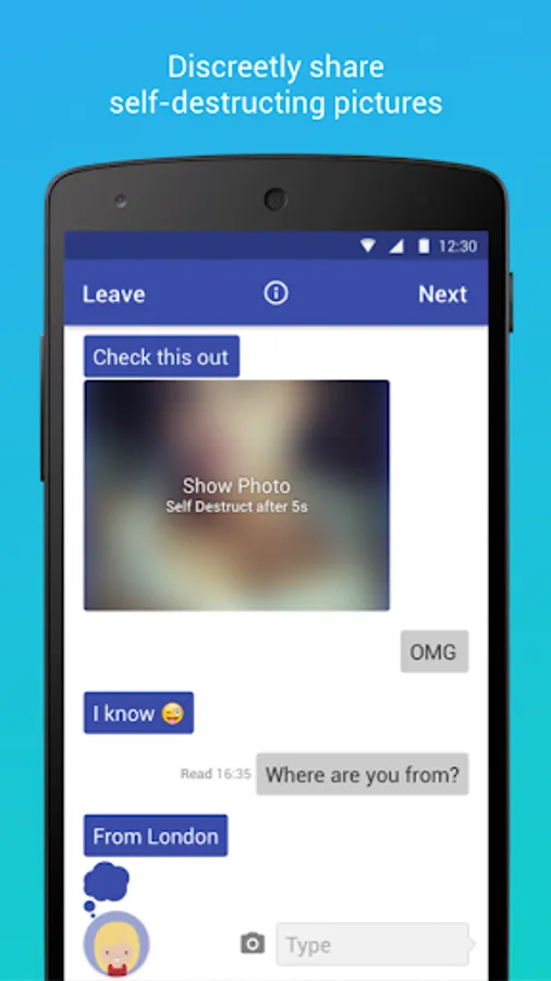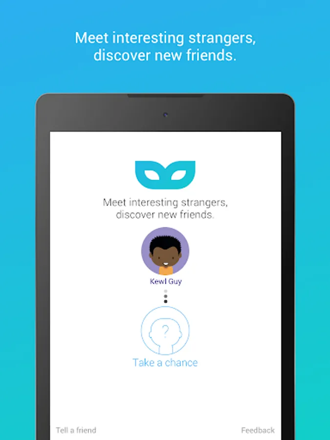 You just tap take a chance, and you will be chatting with somebody new. If you like them you can get to know them, exchange pictures, and texts. If not you can just tap next.