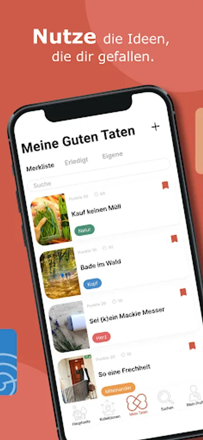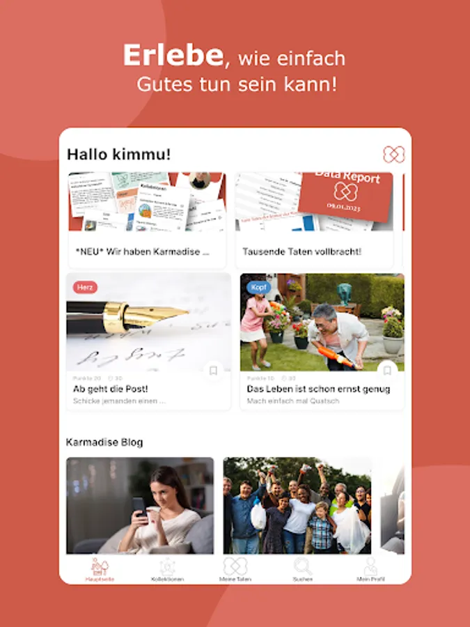 Just do good - Karmadise suggests suitable good deeds for you every day and thus helps you to do the things that are close to your heart: social commitment, mindfulness, friends and family, environmental protection or more physical fitness.