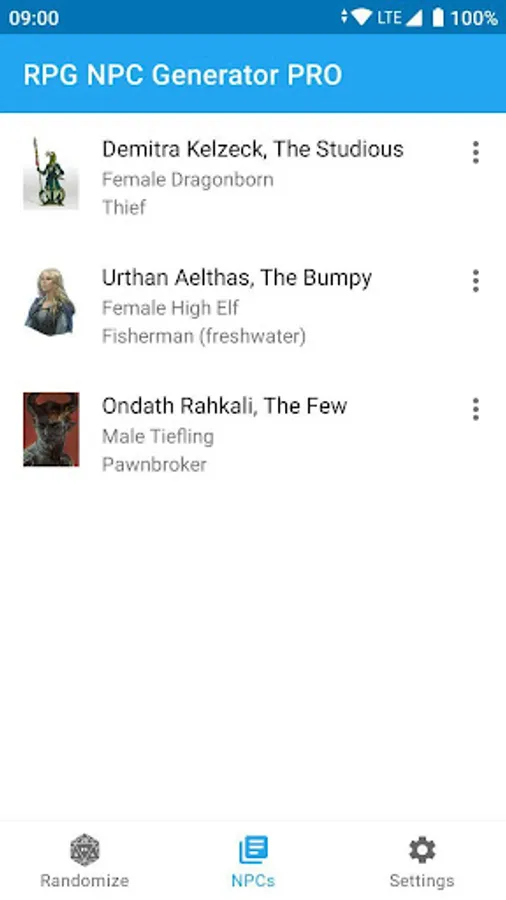 Have in a single app a Name Generator, Personality Generator, Npc Generator and save that all! Quickly, smoothly and with a high quality!