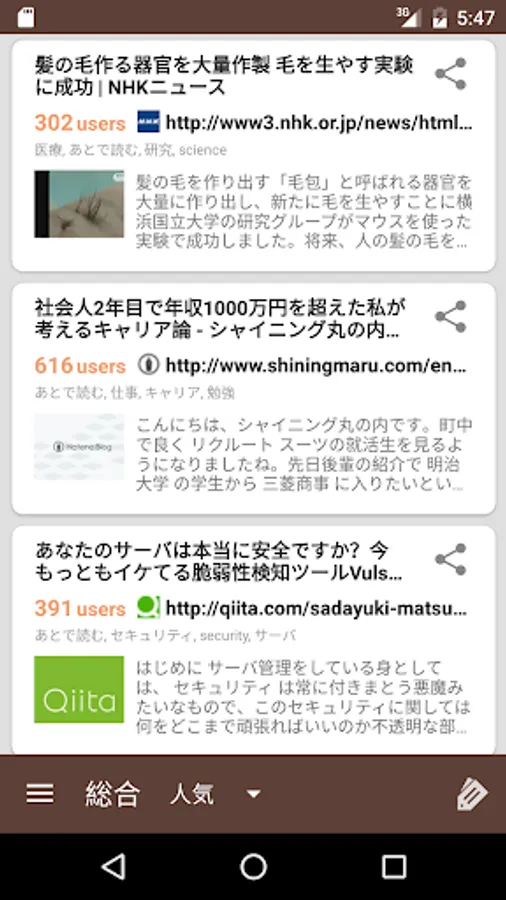 ・ You can register in the "Read later" list in the application without bookmarking by sliding the feed to the right.