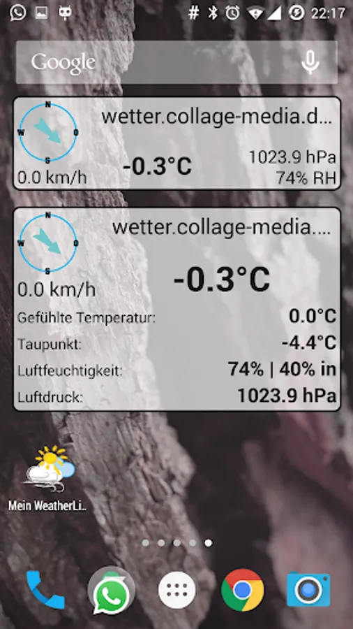 The app brings the data of your Davis weather station, or more than 18,000 other stations to your mobile phone. In addition to updating the weather data every 5 seconds it is also possible the data to be compared with other, selected stations. With this "unofficial" app project is trying to address the needs of users by Weather link.