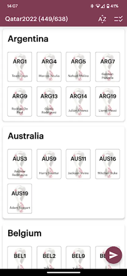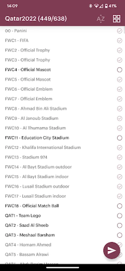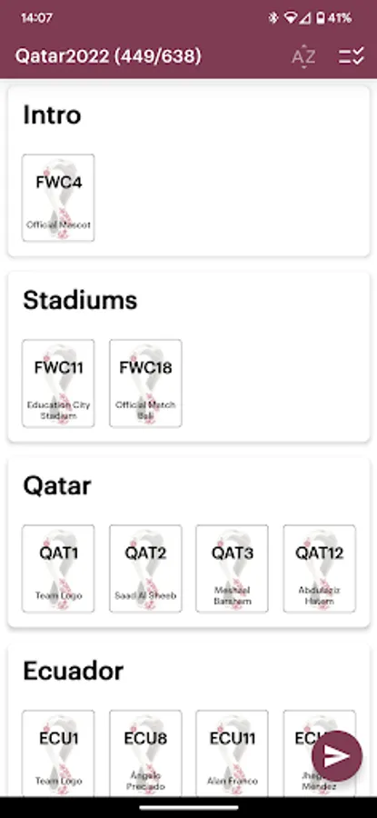 App for keeping records of collected Panini stickers. Features: