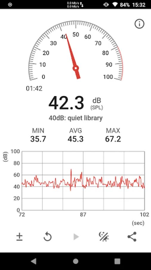 Sound Meter is also known as Sound Pressure Level meter (SPL meter) , noise level meter, decibel meter(dB meter), sound level meter or soundmeter. You can experience tidy graphic design with high frame by this smart sound meter app.
