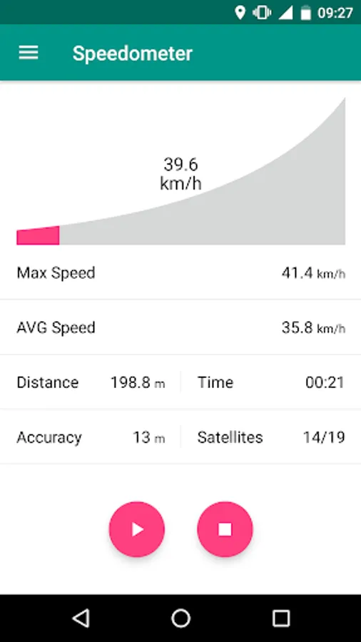 Speedometer (Bike cyclometer) is a GPS app for your phone. It displays your current speed, distance, maximum speed and average speed along with your moving and stopped time. The app also keeps a record of the location coordinates. This a simple speedometer that tells you your current speed in mph, km/h.