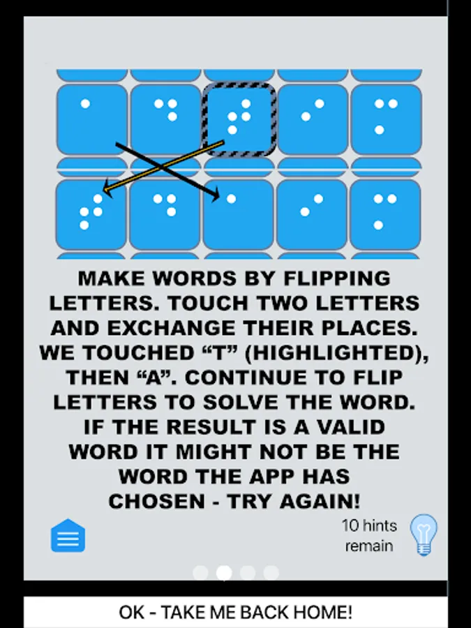 Choose your challenge - 3 or 4 letter words. Touch letters to swap them. Want more? Solve a word then click on that word and get the definition!
