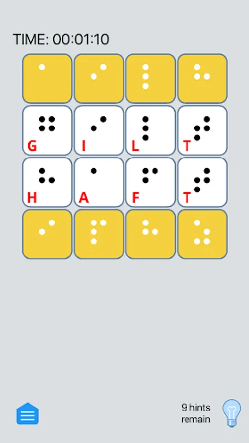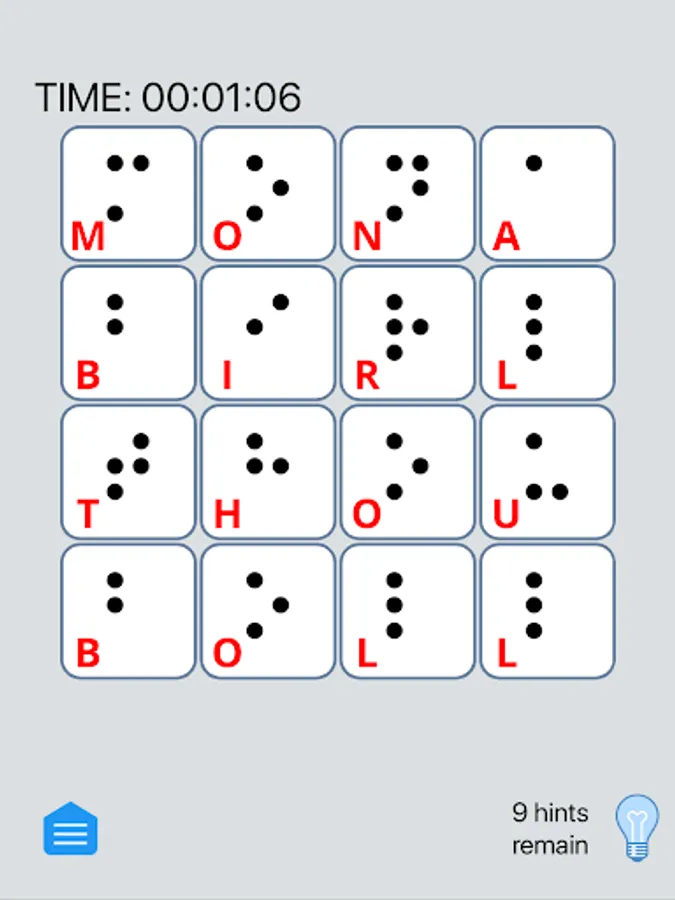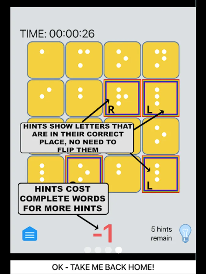 Touch the hint button and all letters that are in their proper place will be briefly highlighted. Using a hint will cost you a hint. You must solve for the word the app has chosen - which will probably help teach you new words!