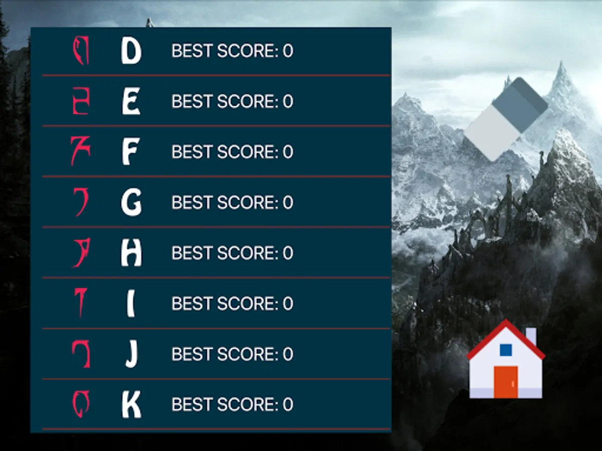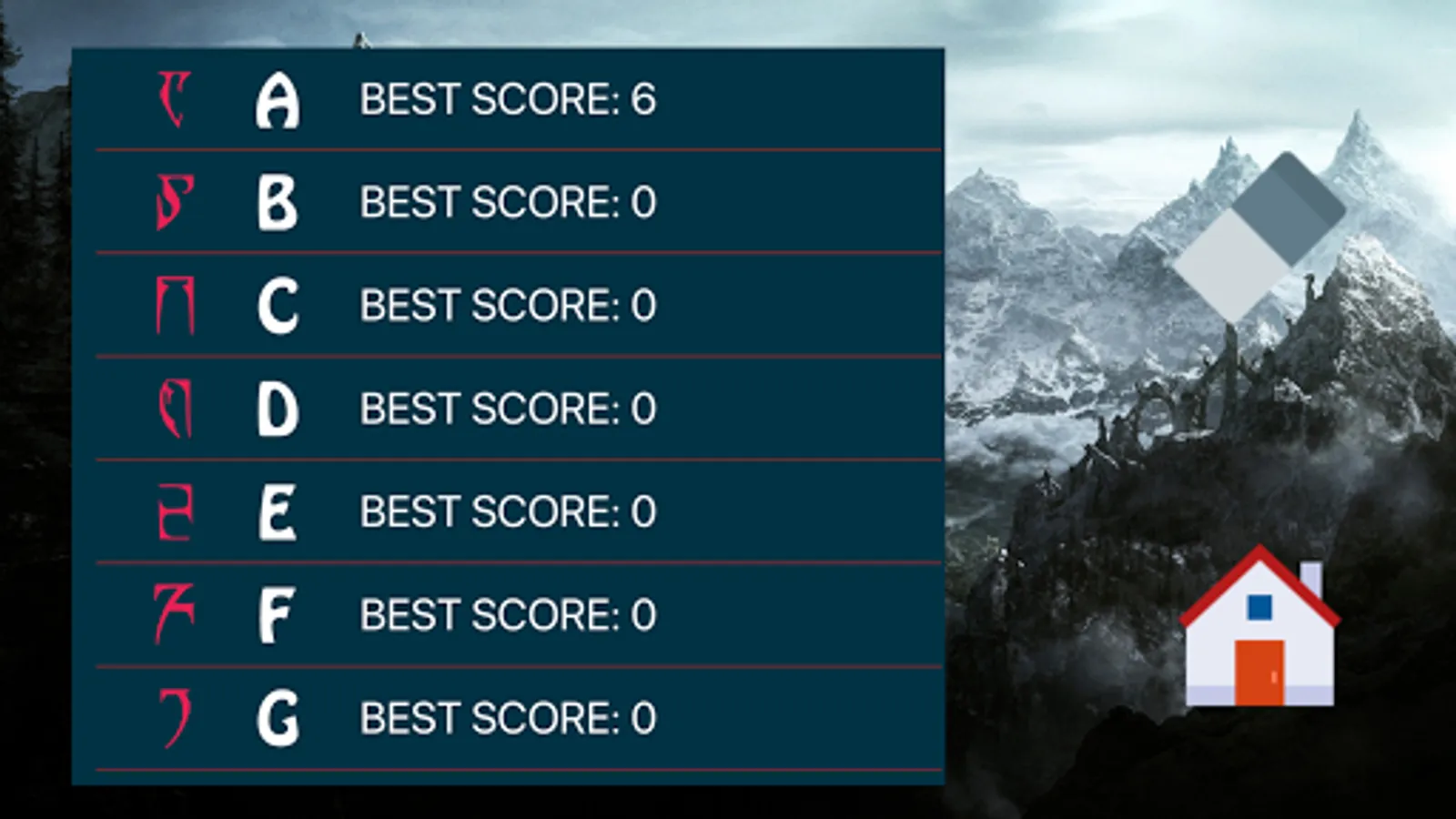 Track your success for every Daedric alphabet letter. If you wish you can reset all the points saved and restore the game to the initial settings.