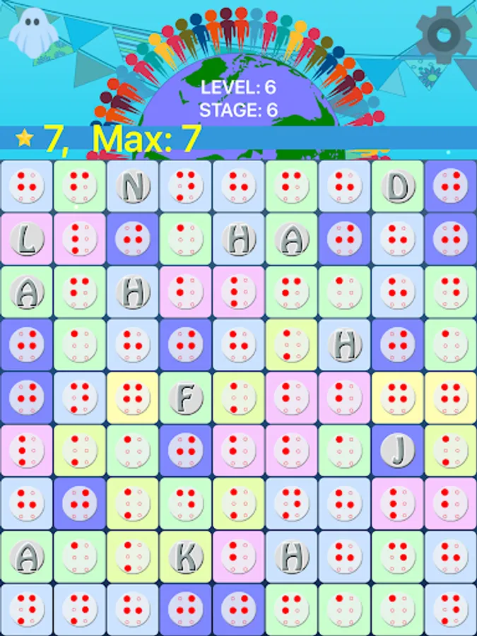 Learn Braille with this easy to play, harder to master, educational game. There are seven levels with level 1 having an easy 4x4 grid of letters. Swipe letters so at least three are grouped horizontally or vertically. You might find letters are already grouped - just touch them to score. Score 1 point for each letter removed. Score 50 points to advance to the next stage.