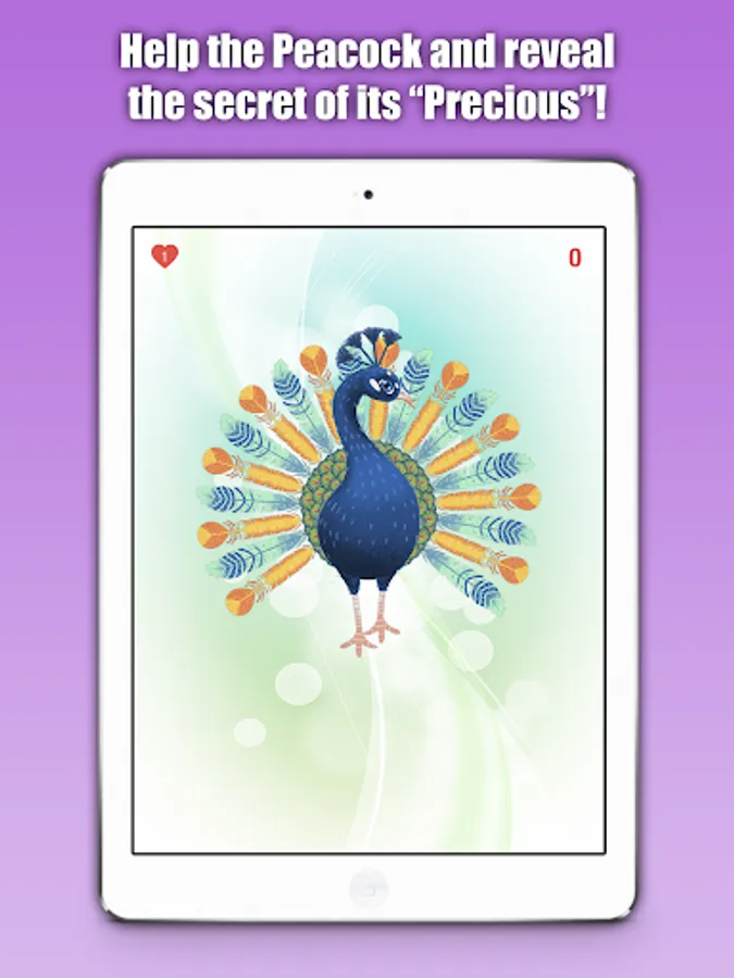 Peacock lost almost all its tail feathers. Pin all lovely colorful feathers in the spinnig tail and reveal the secret of the Peacock “Precious”! ;-)