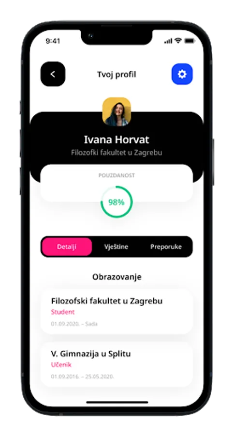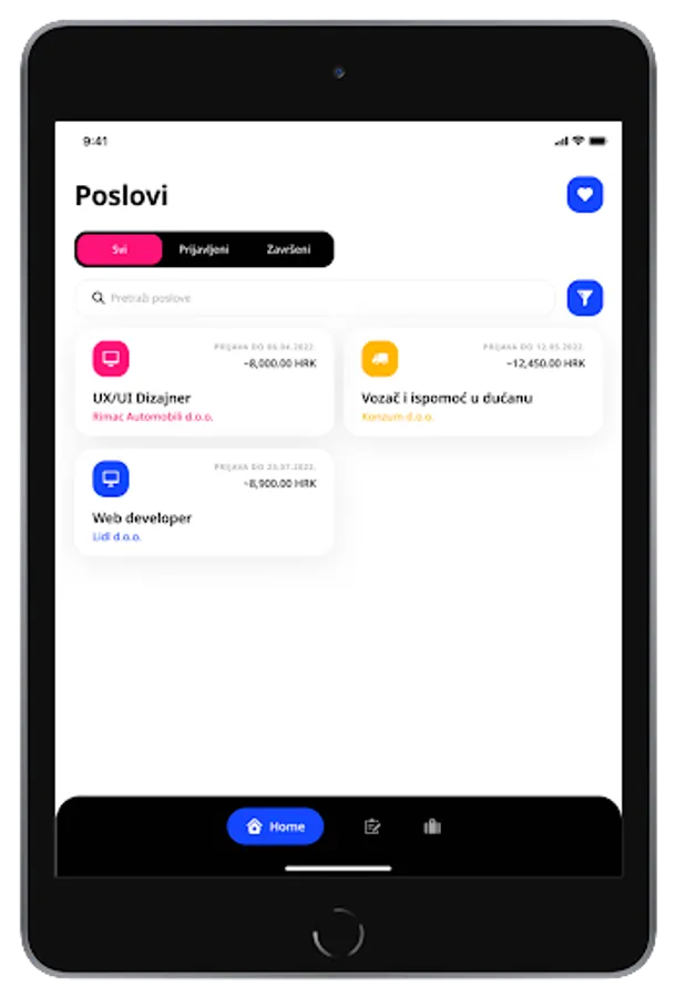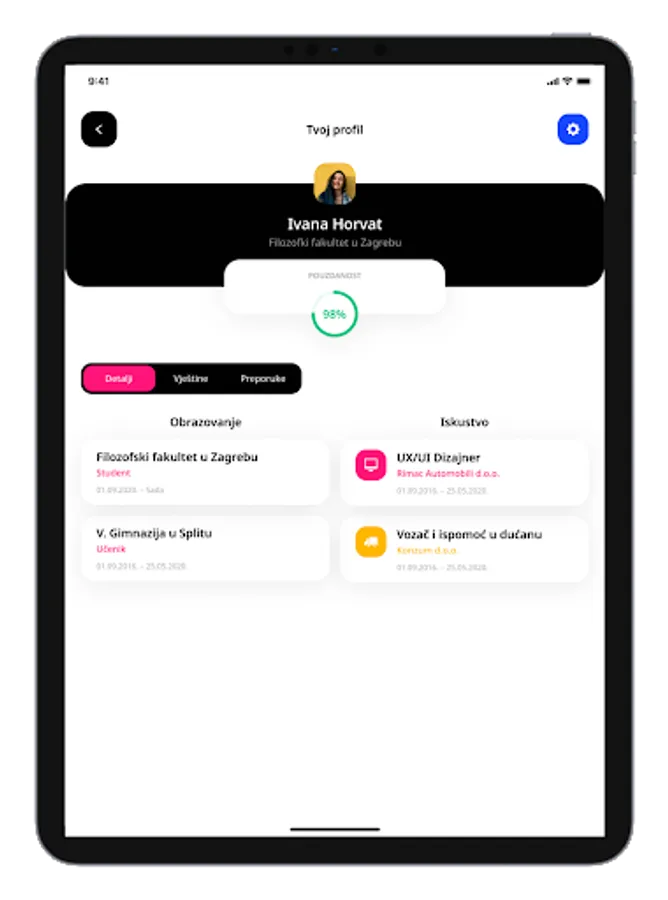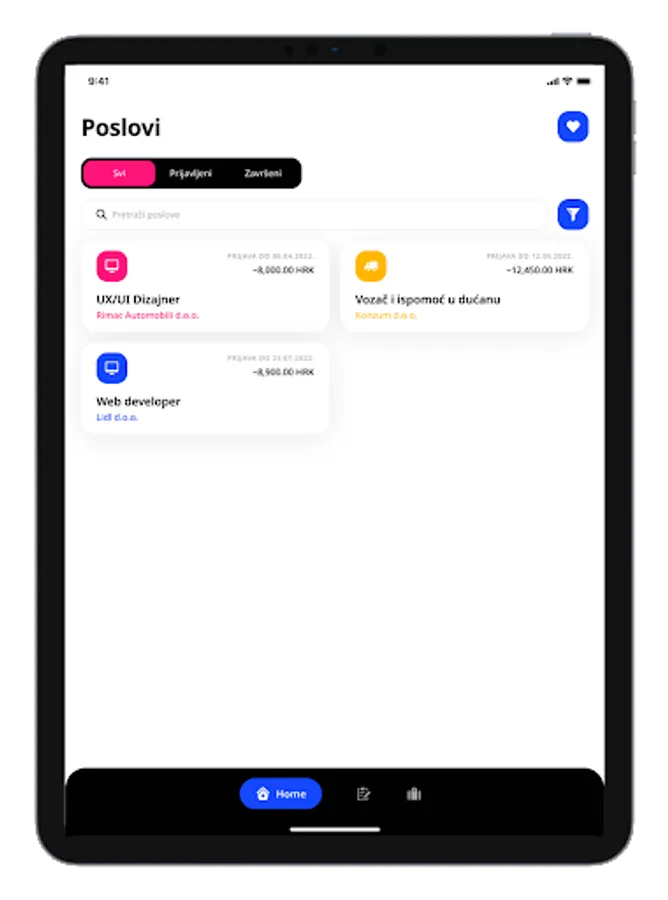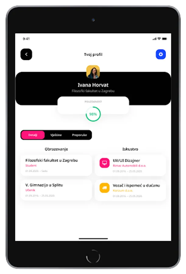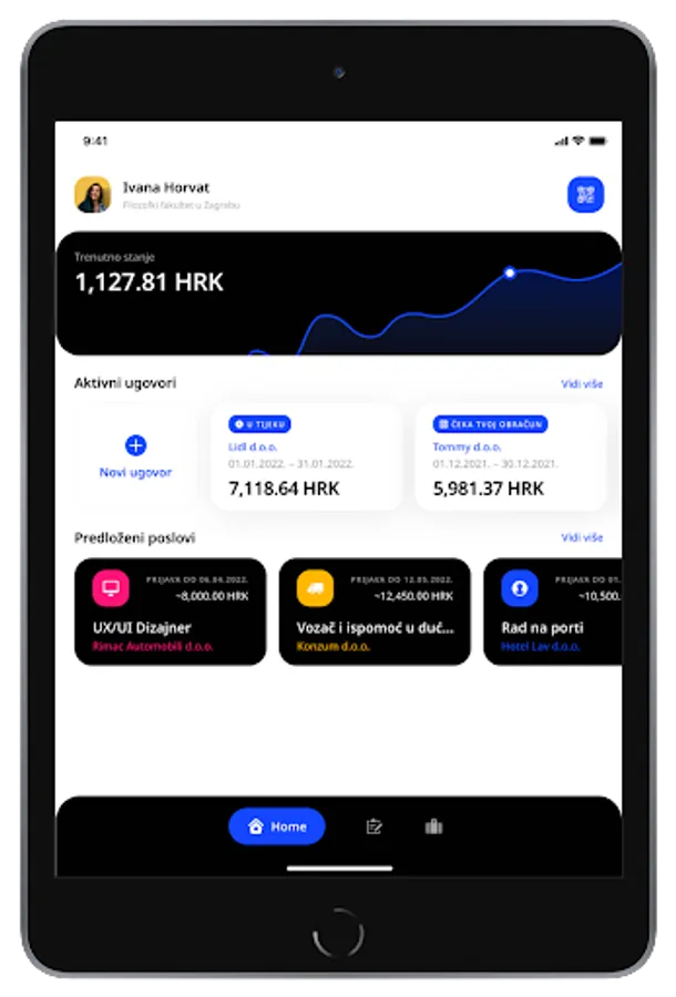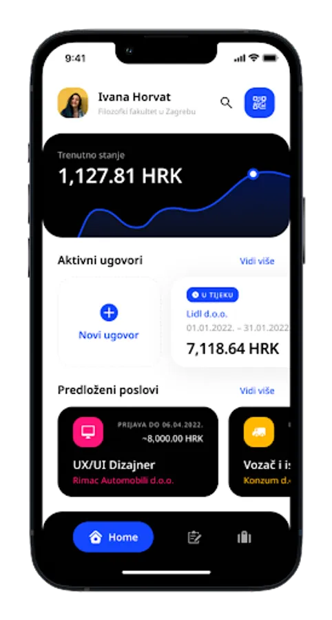 With this application, you can easily apply for a student job, where a completed profile that represents your CV will come in handy. If you are already employed, using a paper clip, you can very easily take out a contract and sign it with a digital signature in just a few minutes.