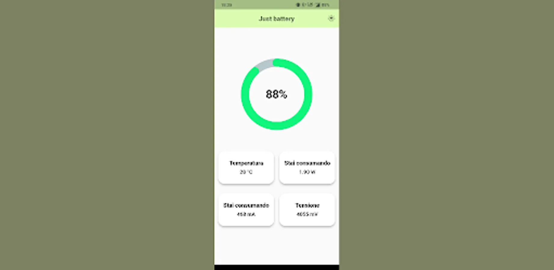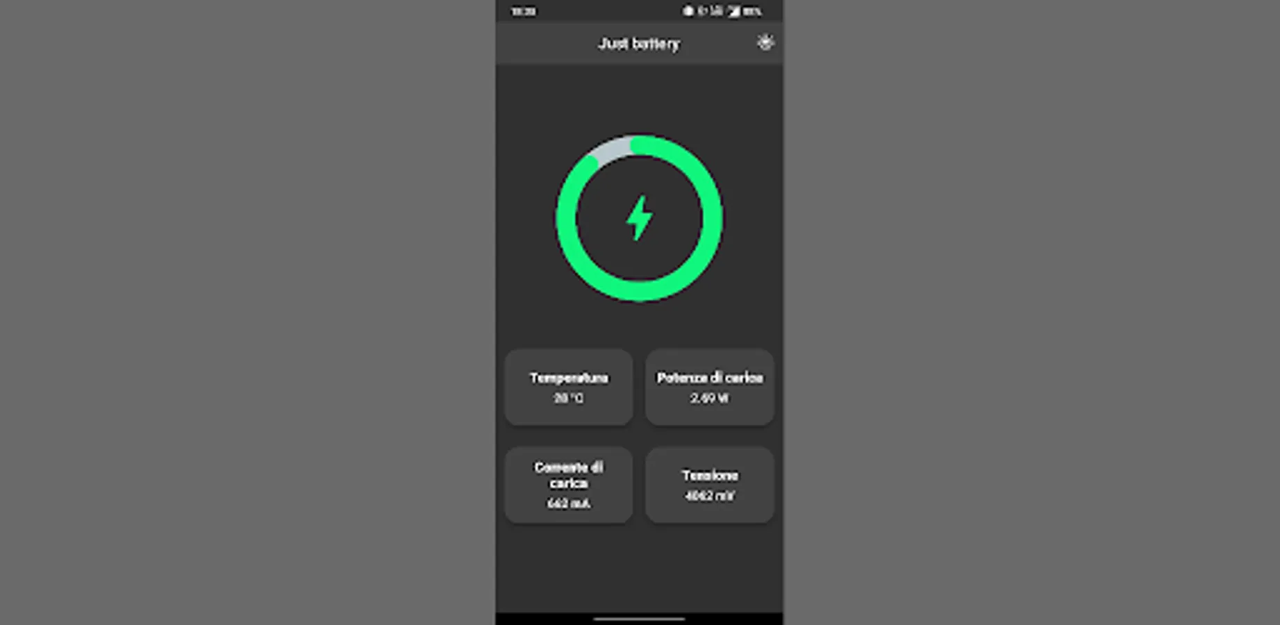 In a single screen you have the main information regarding the battery of your device available: temperature, current, power and voltage!