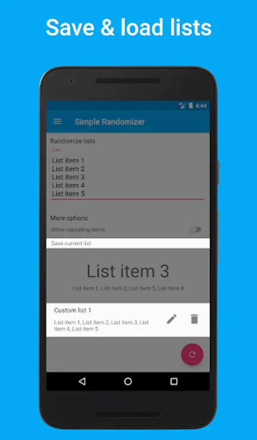 - Support for multiple lists: Save and load lists to make working with the list randomizer even easier