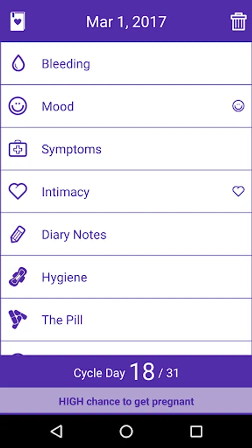 + Reminders for your next periods, fertile days, birth control pill, ...